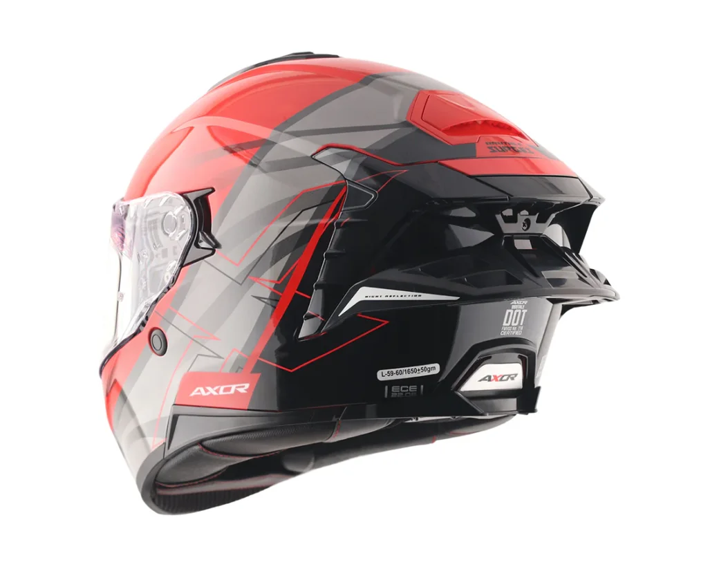 Axor Brutale Çift Spoiler Surges Kırmızı Gri Kapalı Motosiklet Kaskı ile sürüş tutkunuzu serbest bırakın! Tarz, üstün güvenlik ve performanstan ödün vermeyenler için özel olarak tasarlanmıştır. ISI, DOT ve ECE 22.06 gibi en yüksek uluslararası standartlarla sertifikalandırılmış olan bu kask, yolda tavizsiz koruma sunar.