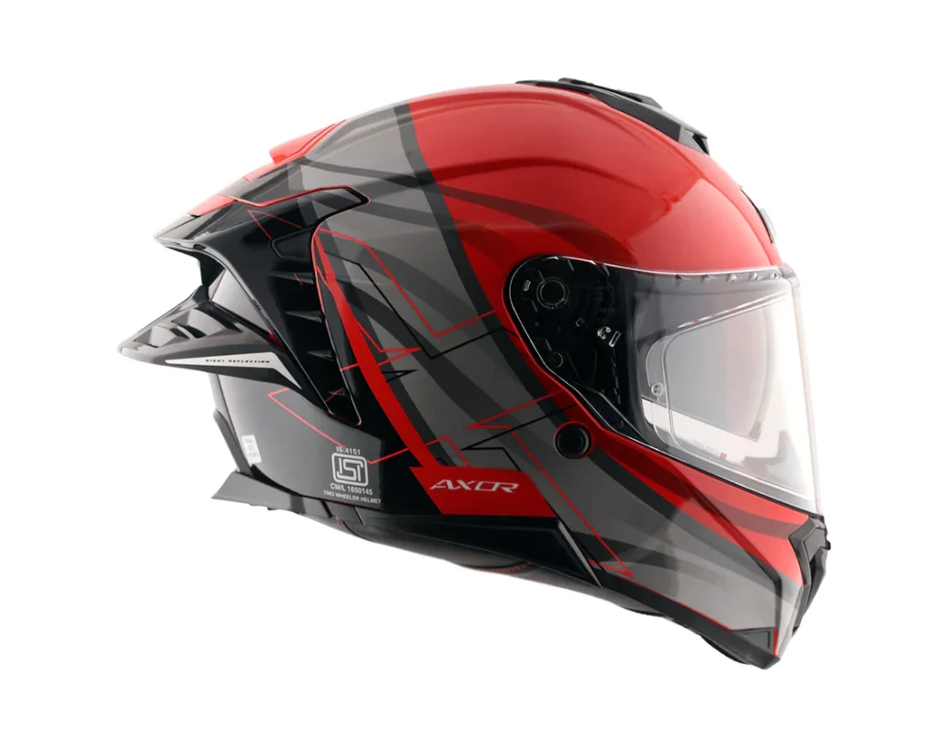 Axor Brutale Çift Spoiler Surges Kırmızı Gri Kapalı Motosiklet Kaskı ile sürüş tutkunuzu serbest bırakın! Tarz, üstün güvenlik ve performanstan ödün vermeyenler için özel olarak tasarlanmıştır. ISI, DOT ve ECE 22.06 gibi en yüksek uluslararası standartlarla sertifikalandırılmış olan bu kask, yolda tavizsiz koruma sunar.