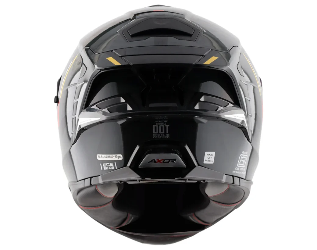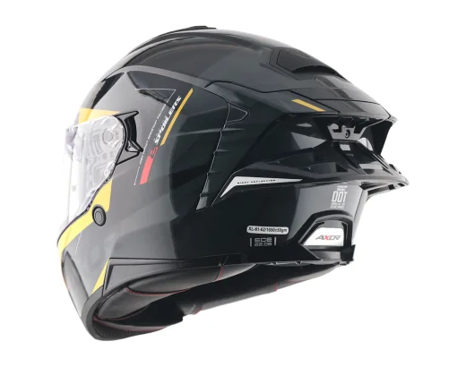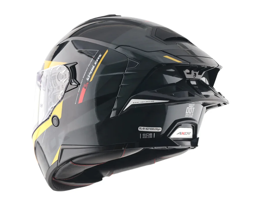 Axor Brutale Çift Spoiler Kryptic Siyah Sarı Kapalı Motosiklet Kaskı ile sürüş tutkunuzu serbest bırakın! Tarz, üstün güvenlik ve performanstan ödün vermeyenler için özel olarak tasarlanmıştır. ISI, DOT ve ECE 22.06 gibi en yüksek uluslararası standartlarla sertifikalandırılmış olan bu kask, yolda tavizsiz koruma sunar.